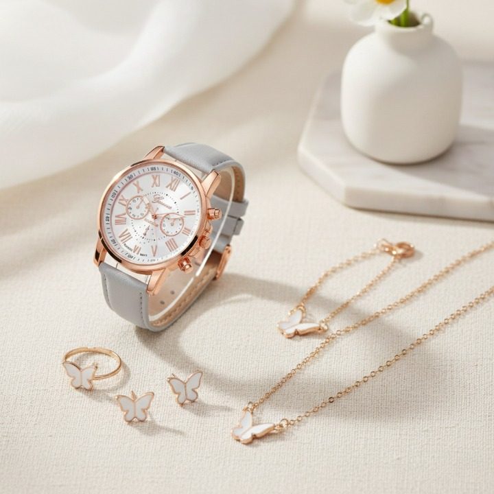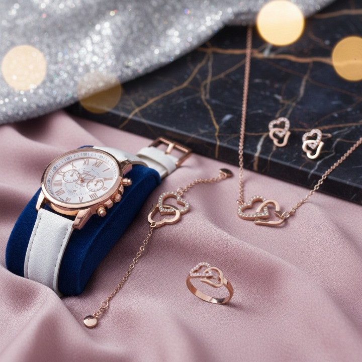 Produto: conjunto relogio feminino quartz e joia LUXO.